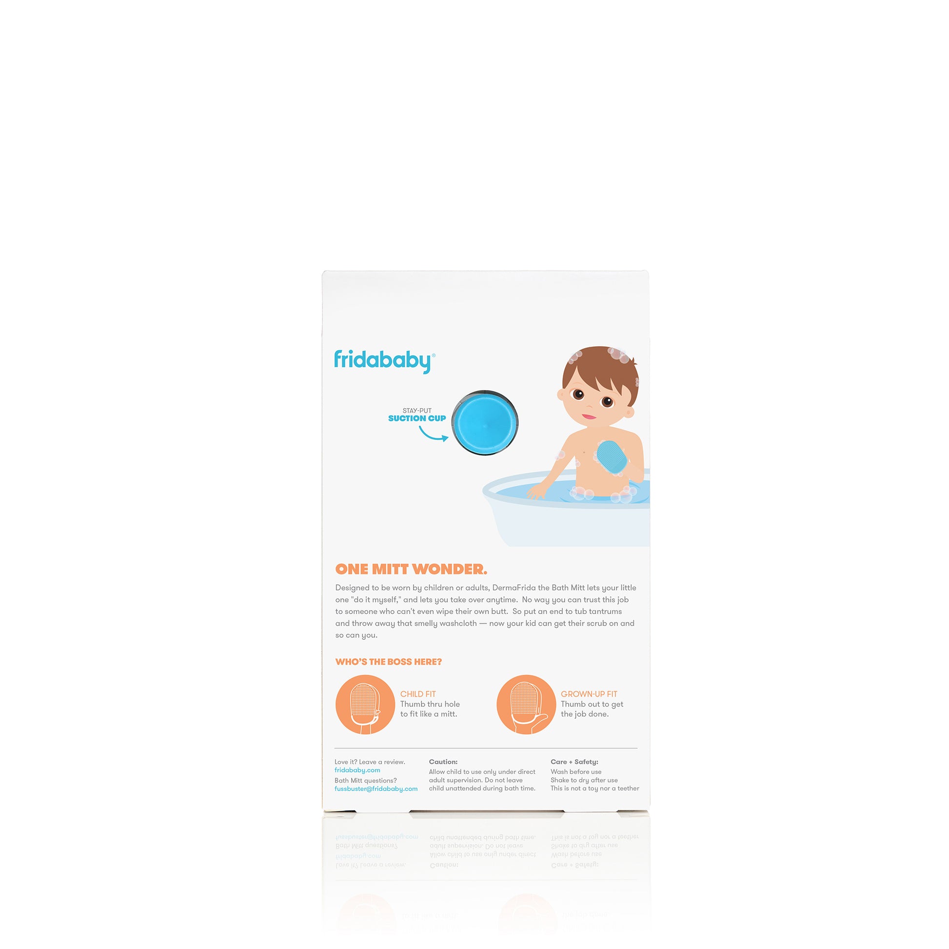 Toss the smelly washcloth and say ta-ta to tub tantrums. DermaFrida the Bath Mitt fits little paws AND big hands so your kiddo can practice good hygiene, then you can take over to get 'em squeaky clean. After all, how can you trust this job to someone who can't even wipe their own butt? Get your scrub on with the Bath Mitt.